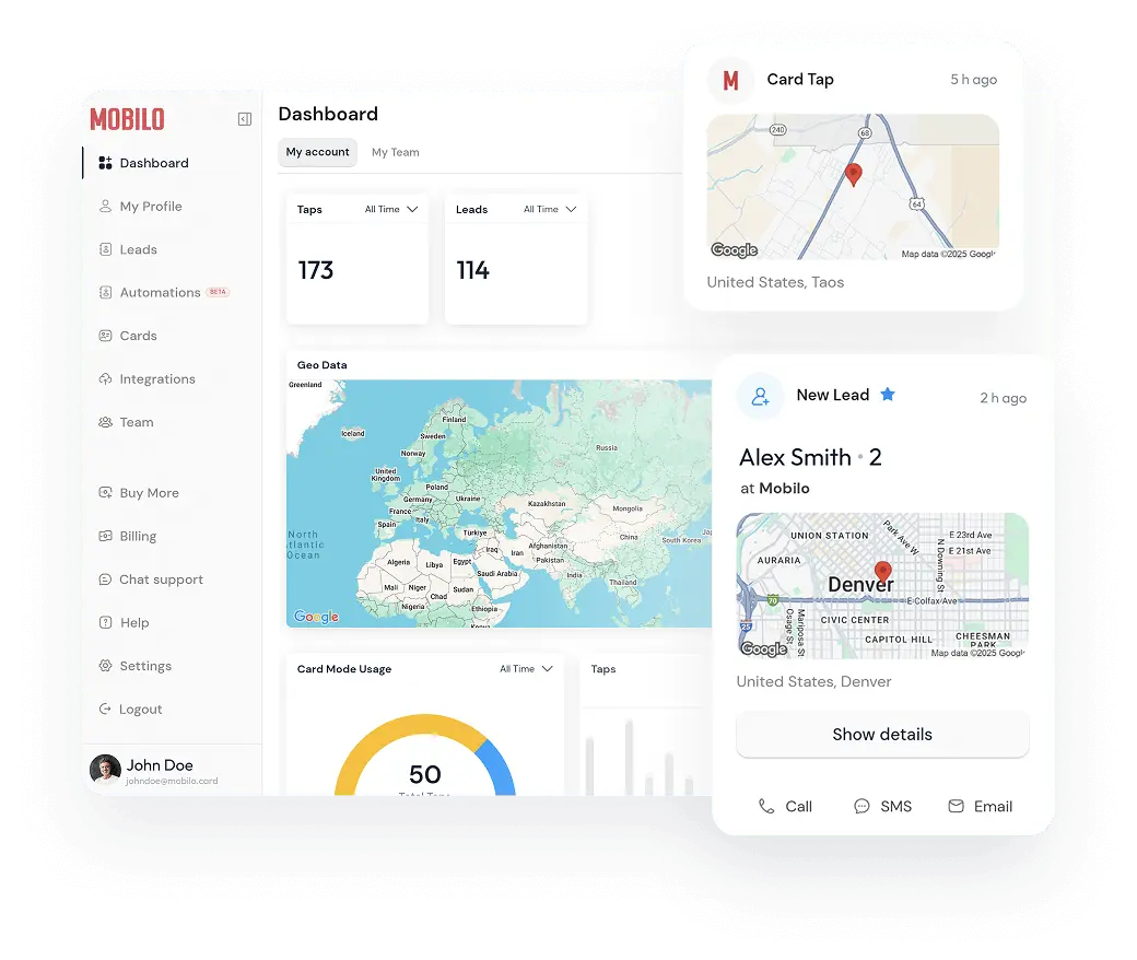 Mit den intelligenten Networking-Tools von Mobilo können Veranstaltungsgäste und Aussteller schnell und einfach ihre Kontaktdaten und Verkaufsmaterialien auf sichere, umweltfreundliche und COVID-geschützte Weise austauschen.